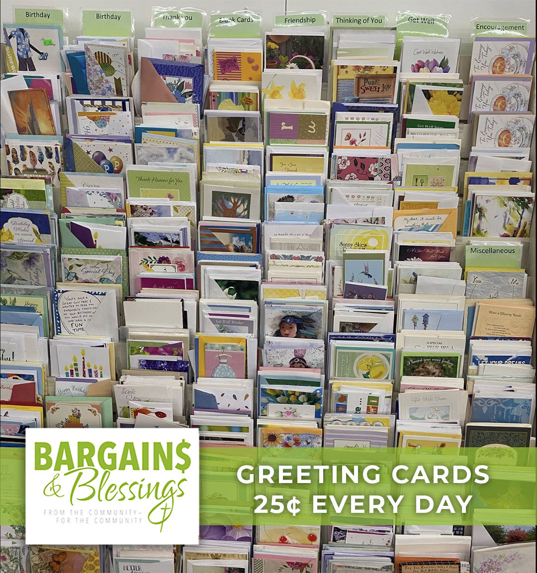 Bargains & Blessings is a retail shop that sells secondhand goods at low prices. Traditional thrift shops support one non-profit organization, but our mission reaches farther with our proceeds being donated to different local, faith-based non-profits each month. You get a bargain AND a blessing when you choose to shop in our stores.