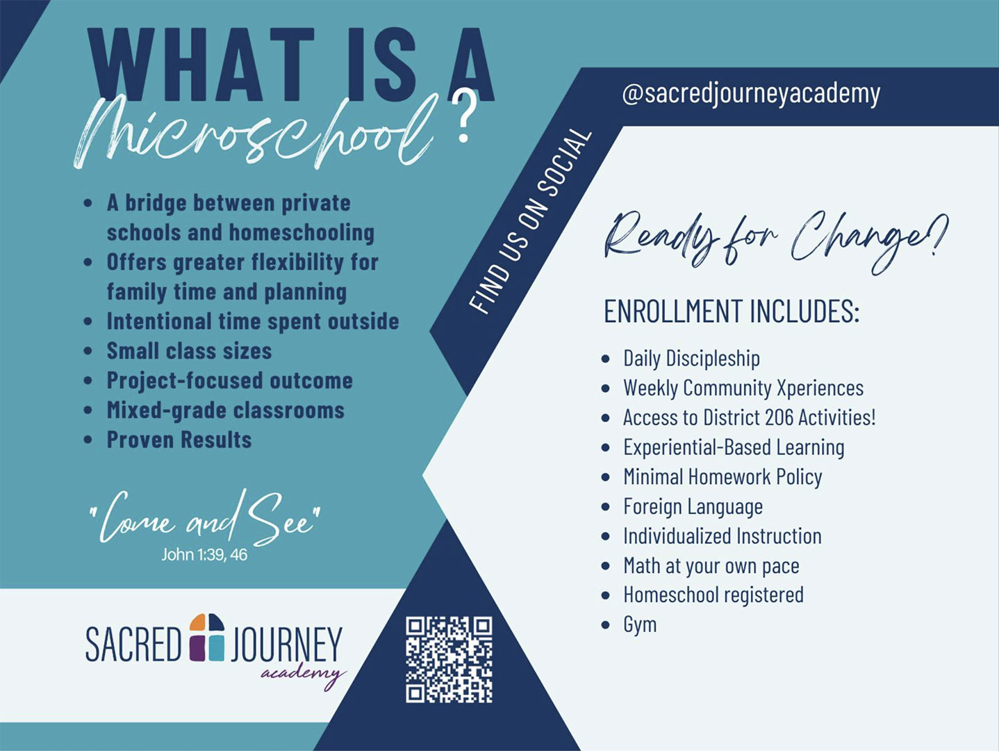 As a microschool focused on discipleship, Sacred Journey is bringing together a community of parents who are like-minded in their sincere faith walk with God. With parents in collective agreement about their foundation of truth and desire to pursue Jesus, our students achieve greater growth and maturity in the faith.