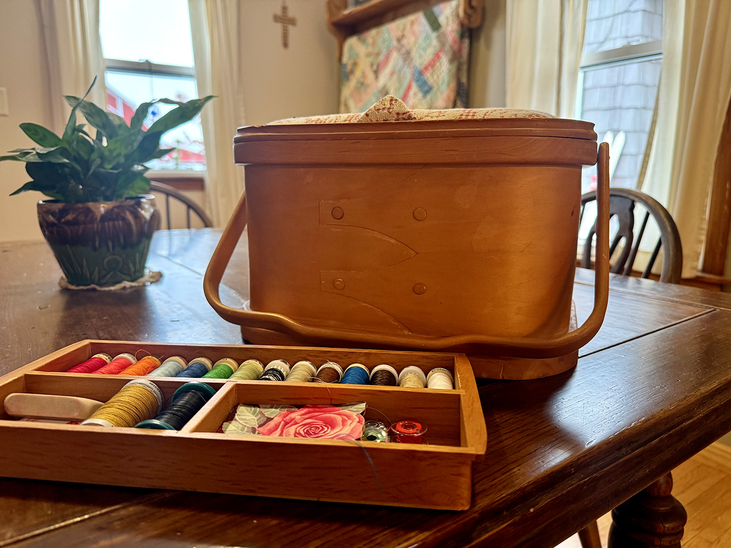 Without further ado, with so many other options to turn my attention to, I busted out my Singer and sewing box. I noticed a sense of gratitude. Both of these items were gifts given to me when I had no knowledge of sewing, but desired to acquire a skill that was common to most women only a generation or so ago. Good thing that machine came with a manual; "See bobbin, page X" flashes in my memory. I can now say I know how to sew, at least well enough to make things that suit my needs.